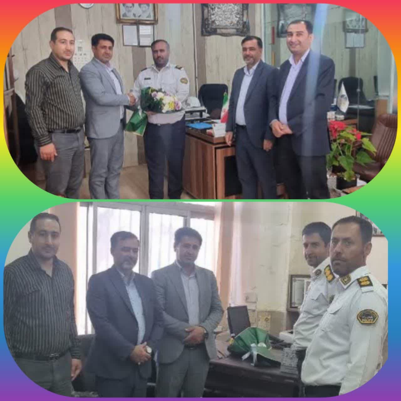 ⏮ به مناسبت گرامی داشت هفته نیروی انتظامی شهردار گندمان به همراه اعضای شورای اسلامی شهر با فرمانده پلیس راهور سرگرد بوگری و همچنین با فرمانده پلیس راه سرهنگشاهوردی دیدار کردند وباا هدای شاخه گل ضمن خسته نباشید این روز را به فرماندهان و پرسنل این دو مجموعه تبریک گفتند