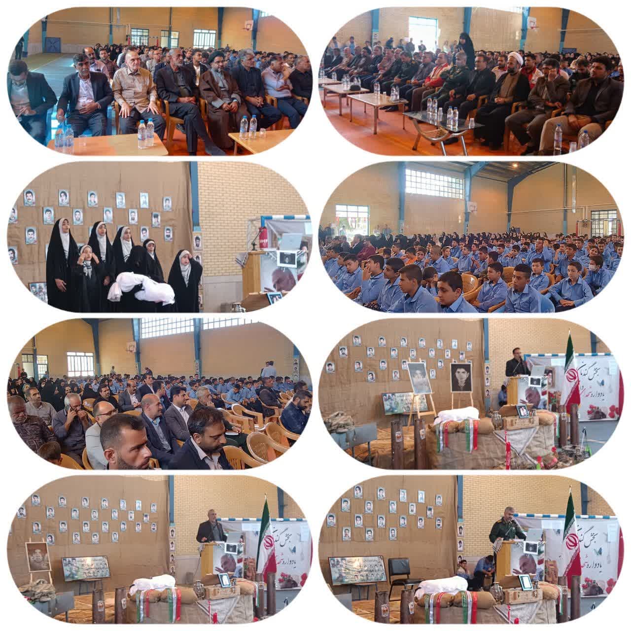 به مناسبت گرامی داشت هفته دفاع مقدس یادواره شهدای دانش آموز منطقه گندمان وشهید شاخص کشور ظفر خالدی امروز با حضور دانش آموزان ،خانواده معظم شهدا ،ایثارگران و جانبازان ،مسئولین استانی ، شهرستانی ،بخش وشهرگندمان درسالن ورزشی مدرسه شهید بهشتی گندمان برگزار شد.