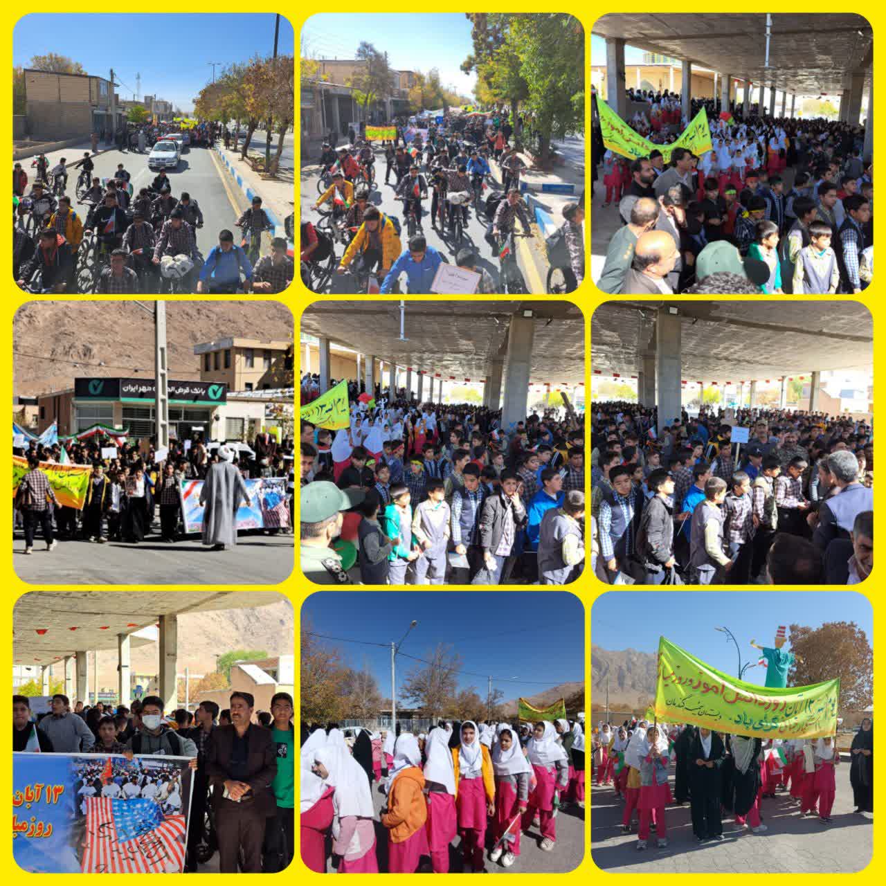 راهپیمایی روز ۱۳ آبان «روز ملی مبارزه با استکبار جهانی» امروز (سهشنبه) همزمان با ایام شهادت حضرت فاطمه زهرا سلامالله علیها از ساعت 10:30صبح از میدان معلم شهر به سمت گلزار شهدا محل برگزاری مراسم برگزار شد.
