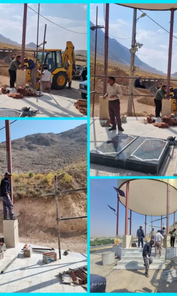 ادامه عملیات نماکاری ستونهای یادمان شهدای گمنام شهر گندمان